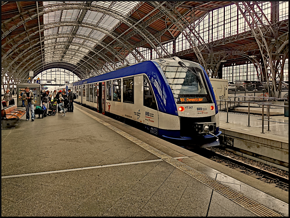 Als "Dampfloktreffen" im Display war DB Regio 442 311 im Leipziger Hbf eingetroffen. Nach Dresden Hbf wurde die Anzeige dann auf RB50 geändert. Seit einiger Zeit setzt DB Regio statt Lokbespannter Doppelstock-Züge nur drei- oder fünfteilige Talent ein, was zu sehr beengten Platzverhältnissen führt, da diese Regiolinie eine Pendlerlinie zwischen Dresden und Leipzig ist. Am 12.04.2025 war aufgrund des Andrangs noch Zeit ein Bild "Bahn und Menschen" zu machen.
